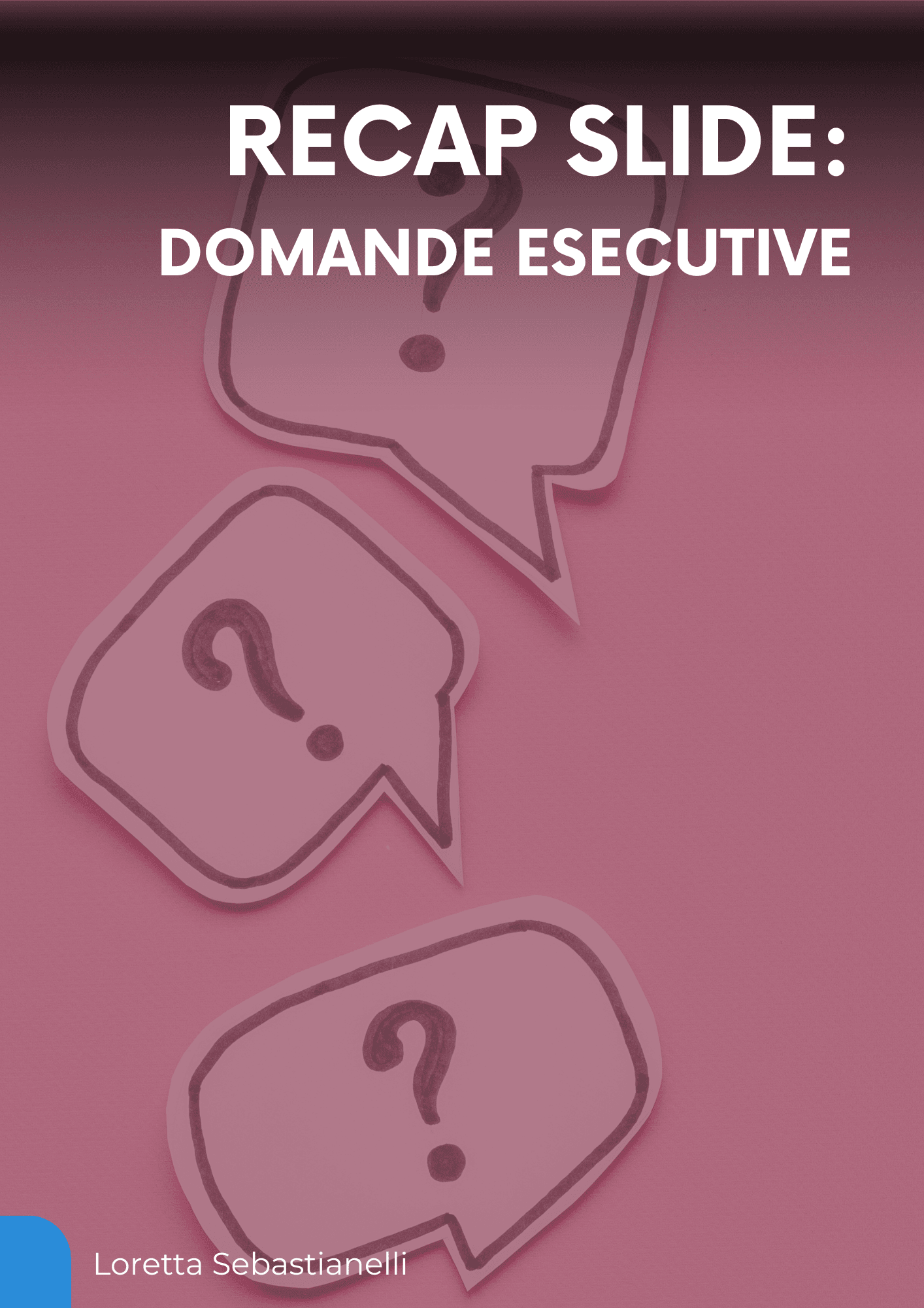 Un pratico riepilogo di tutte le slide con le domande esecutive, raccolte in un unico strumento pronto all’uso.
