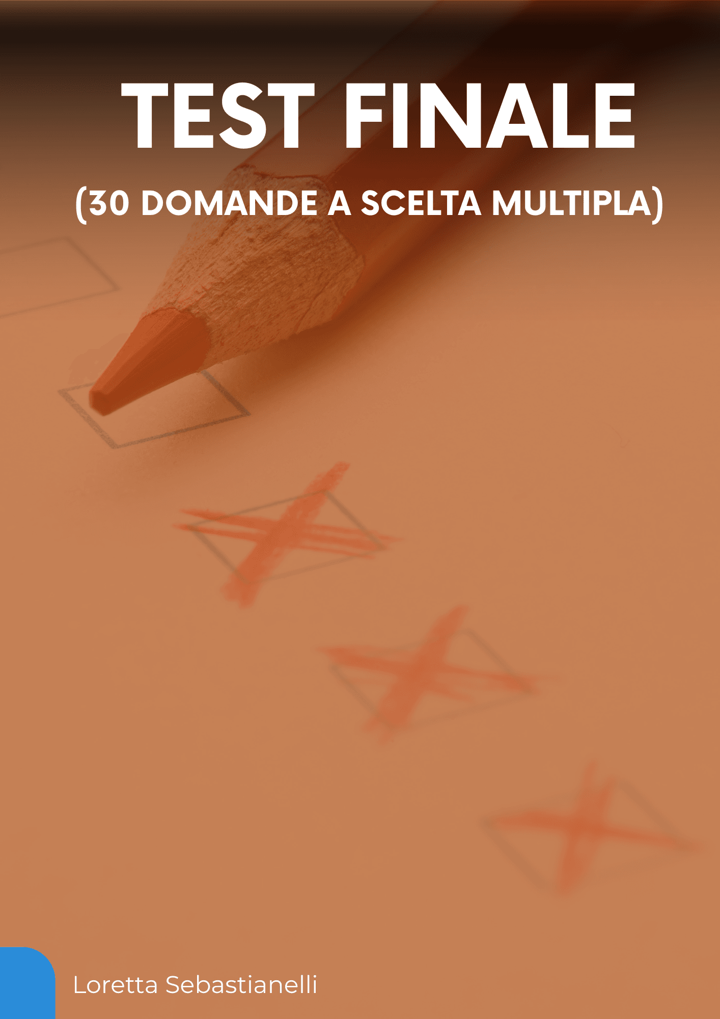 Metti alla prova ciò che hai appreso seguendo il video corso, attraverso un test finale di 30 domande a risposta multipla pensato per verificare le competenze acquisite durante il percorso.